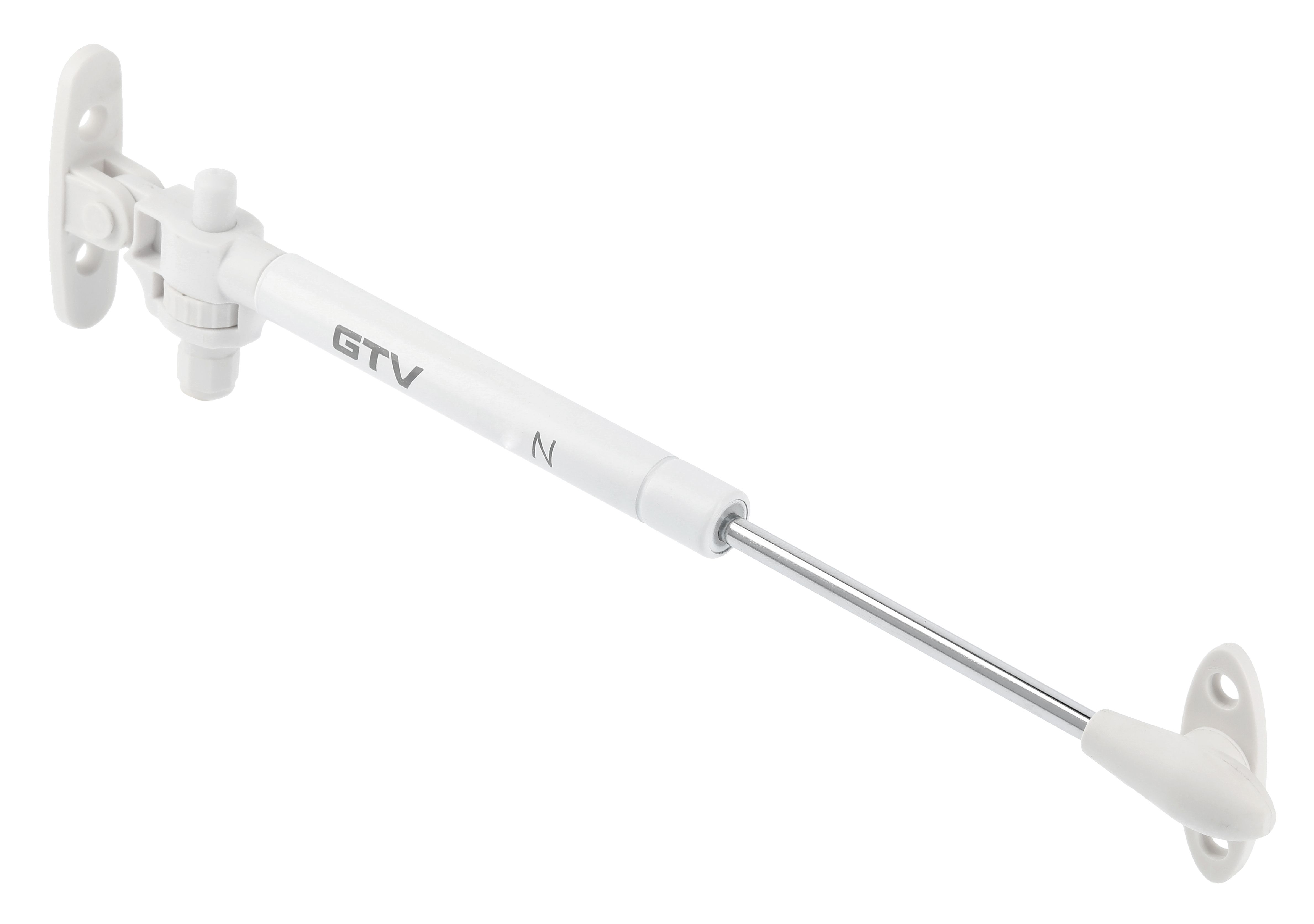 Подъёмник газовый с амортизатором, 100N, GTV, белый - мебельный подъемник, в конструкции которого предусмотрен амортизатор. При правильной регулировке газлифта, в момент закрывании фасада исключается удар и сопутствующий ему шум.