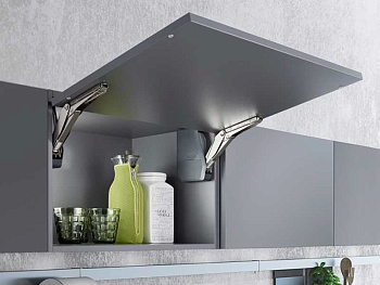 Обладает плавным и бесшумным открыванием/закрыванием и функцией остановки фасада в любом положении.
