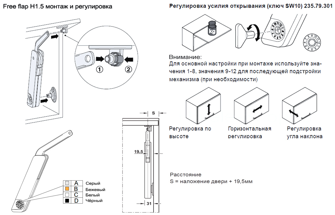 Механизм Free flap H 1.5 модель "D" пластик серый - 1 шт