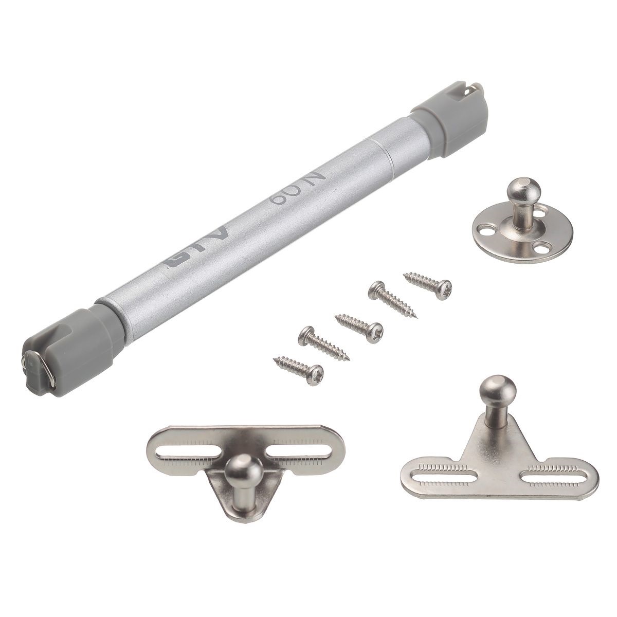 Один подъемник рассчитан на вес, обозначенный в наименовании товара. В качестве основного параметра газлифта также может быть указана сила сжатия, измеряемая в Ньютонах (N). 1 кг примерно соответствует 10N. Для комфортной и долговечной эксплуатации рекомендуется устанавливать два газлифта на один фасад.