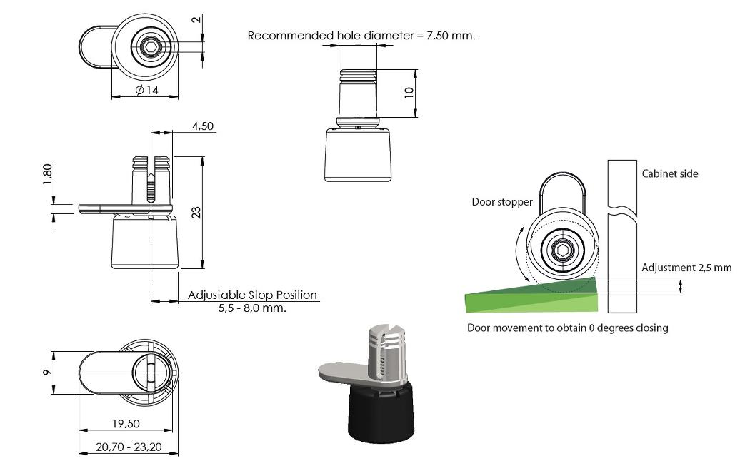Регулируемый эксцентриковый дверной стопор с силиконовым бампером с 5 упорами/положениями