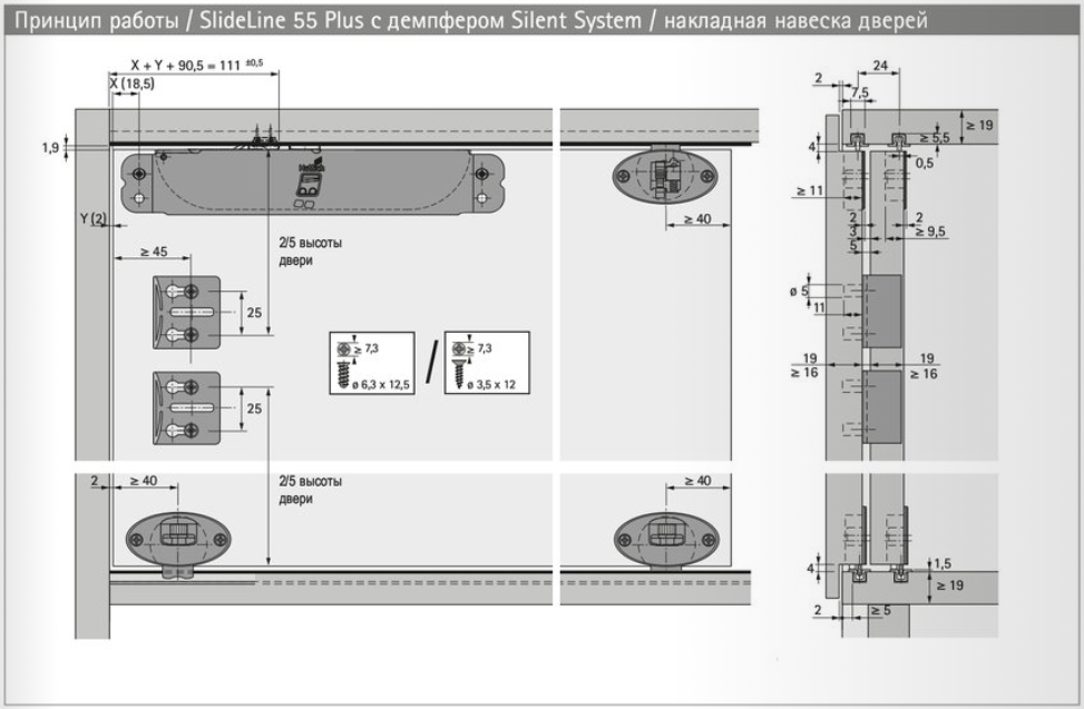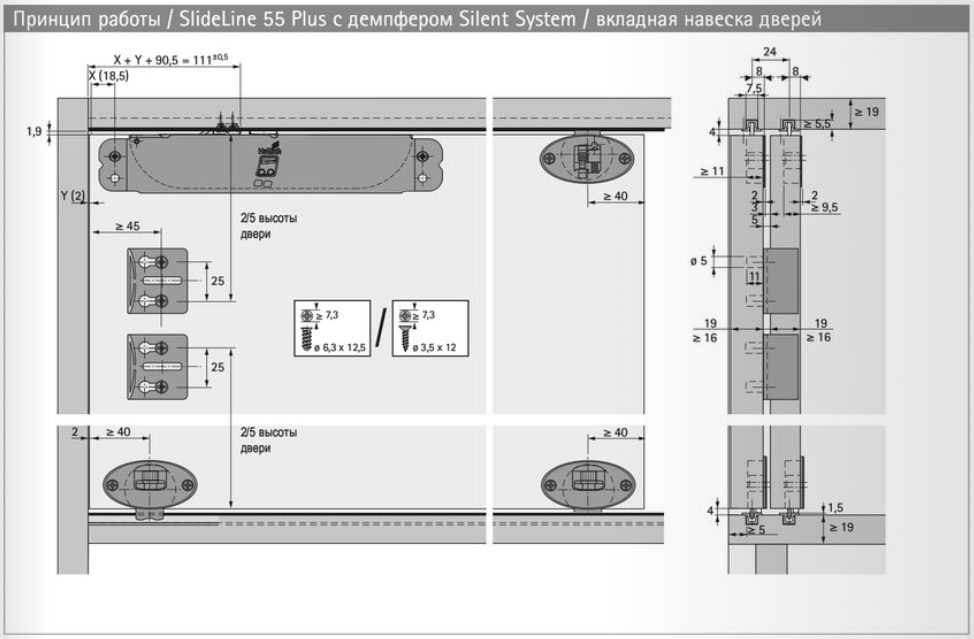 Направляющий элмент под прикручивание для шкафа с двумя вкладными дверями.