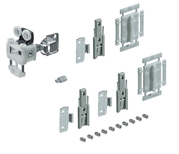 С этим набором фурнитуры следует использовать петли для корпуса шкафа без функции самозакрывания. Рекомендованный угол открывания для петли составляет 110°