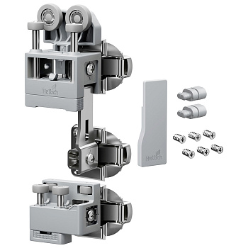 - В комплект входят все необходимые компоненты для одной складной двери с 2 створками, включая ходовой элемент с двумя петлями, направляющий элемент, заглушку и крепеж