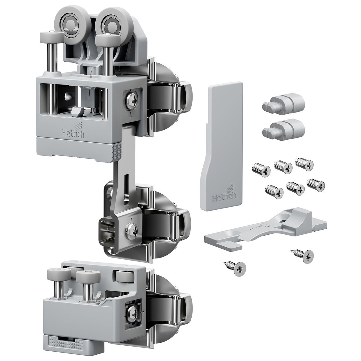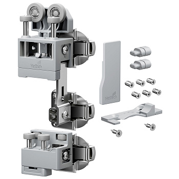 - В комплект входят все необходимые компоненты для одной складной двери с 2 створками, включая ходовой элемент с двумя петлями, направляющий элемент, заглушку и крепеж