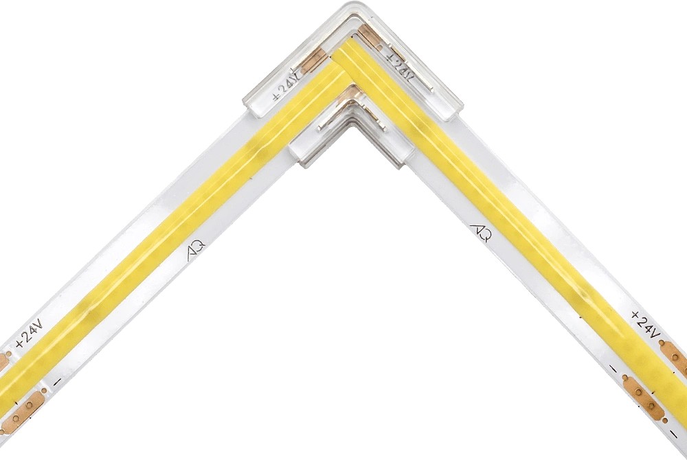 Угловой коннектор, выполненный из прозрачного пластика предназначен для углового соединения светодиодных лент между собой без применения пайки. Использование углового коннектора AQ исключит залом лент в местах изгиба и обеспечит равномерное и яркое свечение по всей длине светодиодной ленты. А лёгкость монтажа обеспечит быстрое и надёжное соединение.