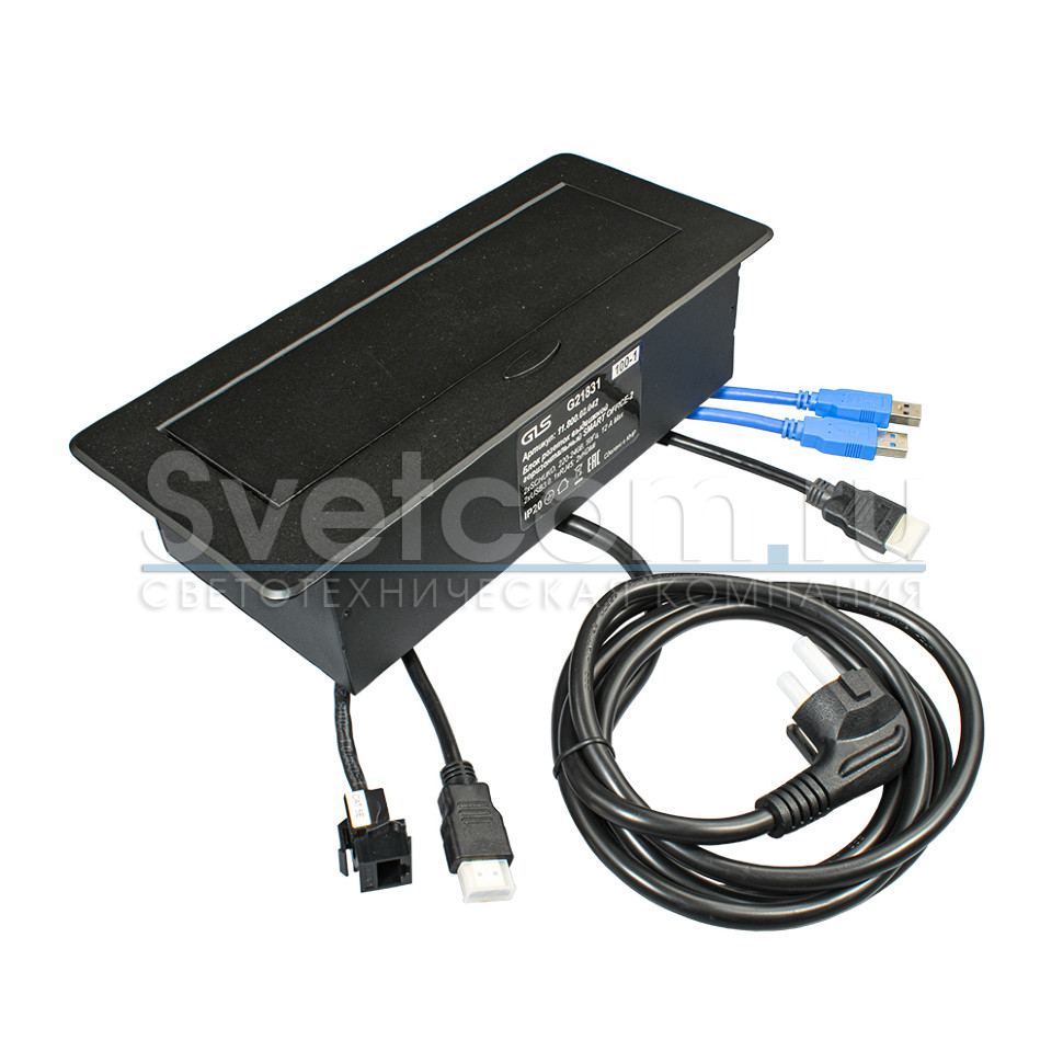 SMART OFFICE Pop-Up-2 блок со следующими разъемами: 2 SCHUKO + 2 USB 3,0 + 1 RJ45 + 2 HDMI, кабель с вилкой 2м.