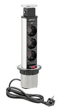 Удлинитель выдвижной, 3 розетки, AE-BPW3S60-80 (Schuko), серый, с проводом 1,5 метра - ваш надежный помощник на работе и дома, при использовании нескольких электроприборов. Удлинитель устанавливается в столешницу, в предварительно сделанное отверстие соответствующего диаметра, и полностью утапливается в нее, когда не используется. Как только вам нужно подключить какое-либо устройство, вы легким движением извлекаете наружу розеточный блок и подключаете к сети ваш гаджет.