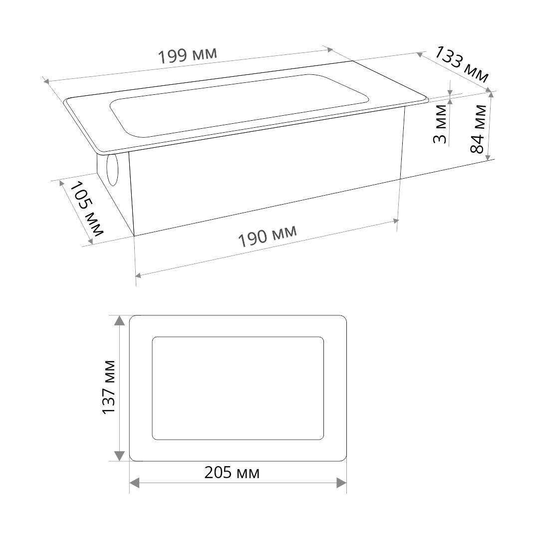 Размеры монтажного отверстия (ш×д, мм): 107х192