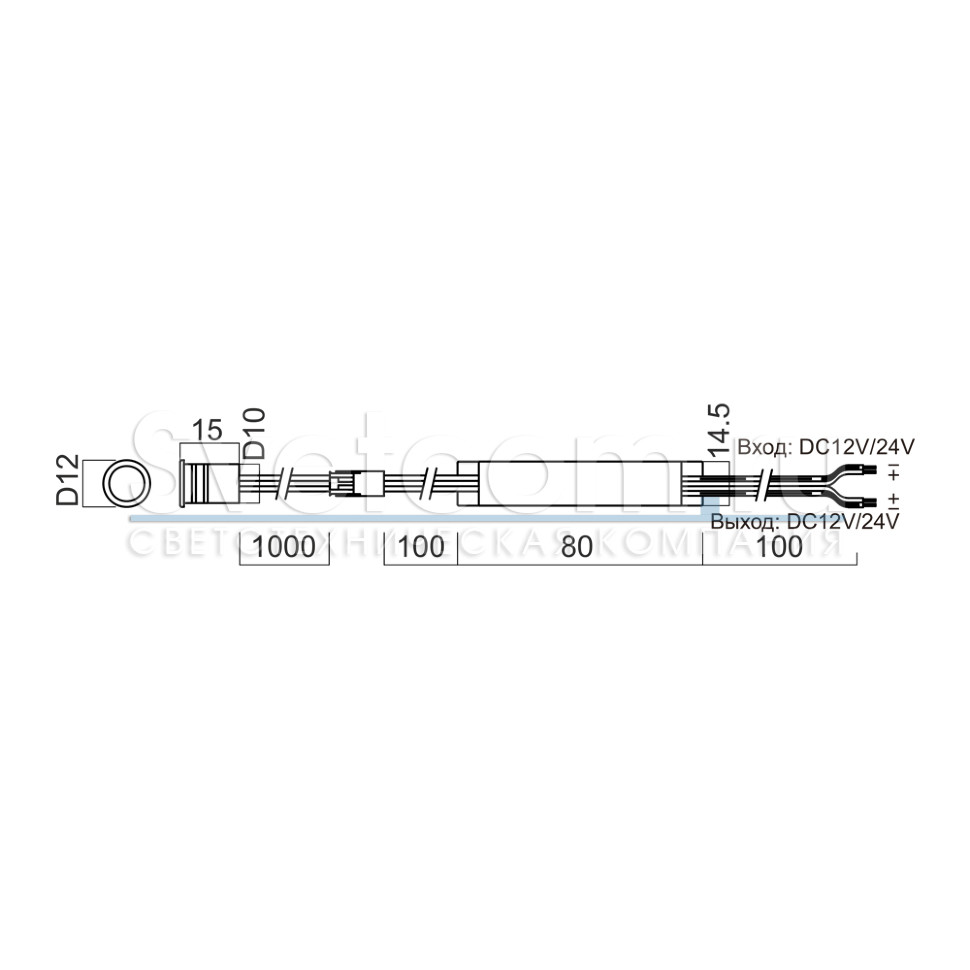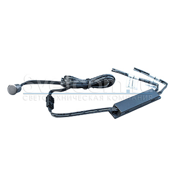 Сенсор имеет внешний диаметр D=12мм, диаметр отверстия для установки сенсора 10мм, цвет сенсора темно-серый, материал - металл. Минимальный диаметр датчика допускает установку в полку толщиной от 12 мм и более. Провод от сенсора до выключателя 1м с разъемами.