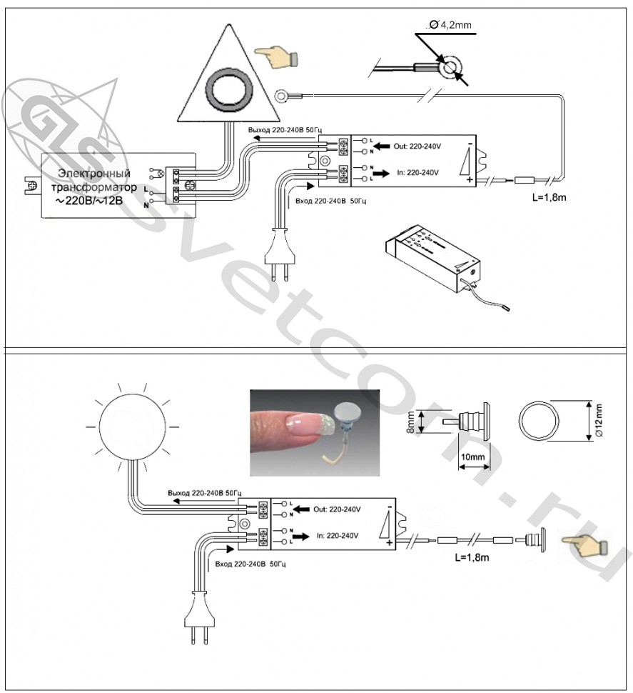 Осветительное оборудование будет включено или выключено при коротком касании сенсорного контакта (провода), который связан с выключателем DKs-1.
