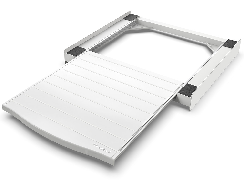 Рама с выдвижной полкой для установки сушильной машины на стиральную позволяет более рационально использовать пространство. Прочная рама обеспечивает жесткое крепление, ремень-стяжка дает дополнительную надежность. Полка расположена на удобной для пользователя высоте. Универсальный дизайн, совместимый с большинством стиральных и сушильных машин с фронтальной загрузкой. Для более комфортного доступа к коммуникациям (для уборки или обслуживания) и снижения уровня шума и вибрации рекомендуем также выкатную стабилизирующую платформу Meliconi