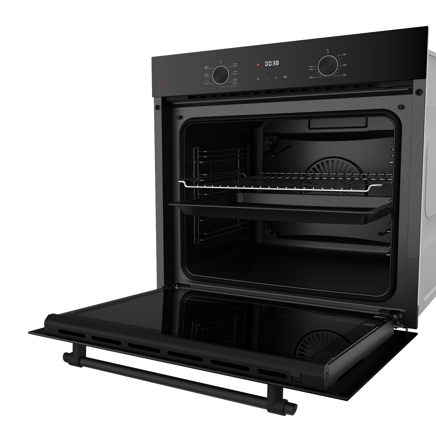 Духовой шкаф относится к серии MAX, основная особенность которой — увеличенный объем рабочей камеры (78 литров). Кроме того, эти модели имеют утапливаемые ручки управления, а в дверце установлено стекло немецкого бренда SCHOTT.