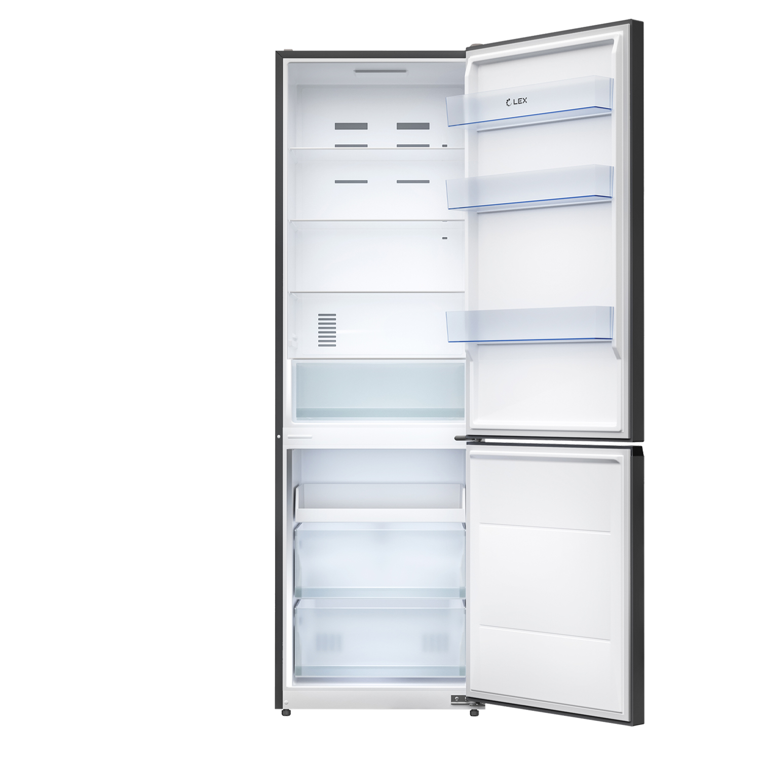 LED-лампы обеспечивают яркий свет, помогая вам быстро найти все, что нужно. Электронная панель управления делает настройку параметров интуитивно понятной. А перенавешиваемые двери делают холодильник LEX LKB185 универсальным для любой кухни.