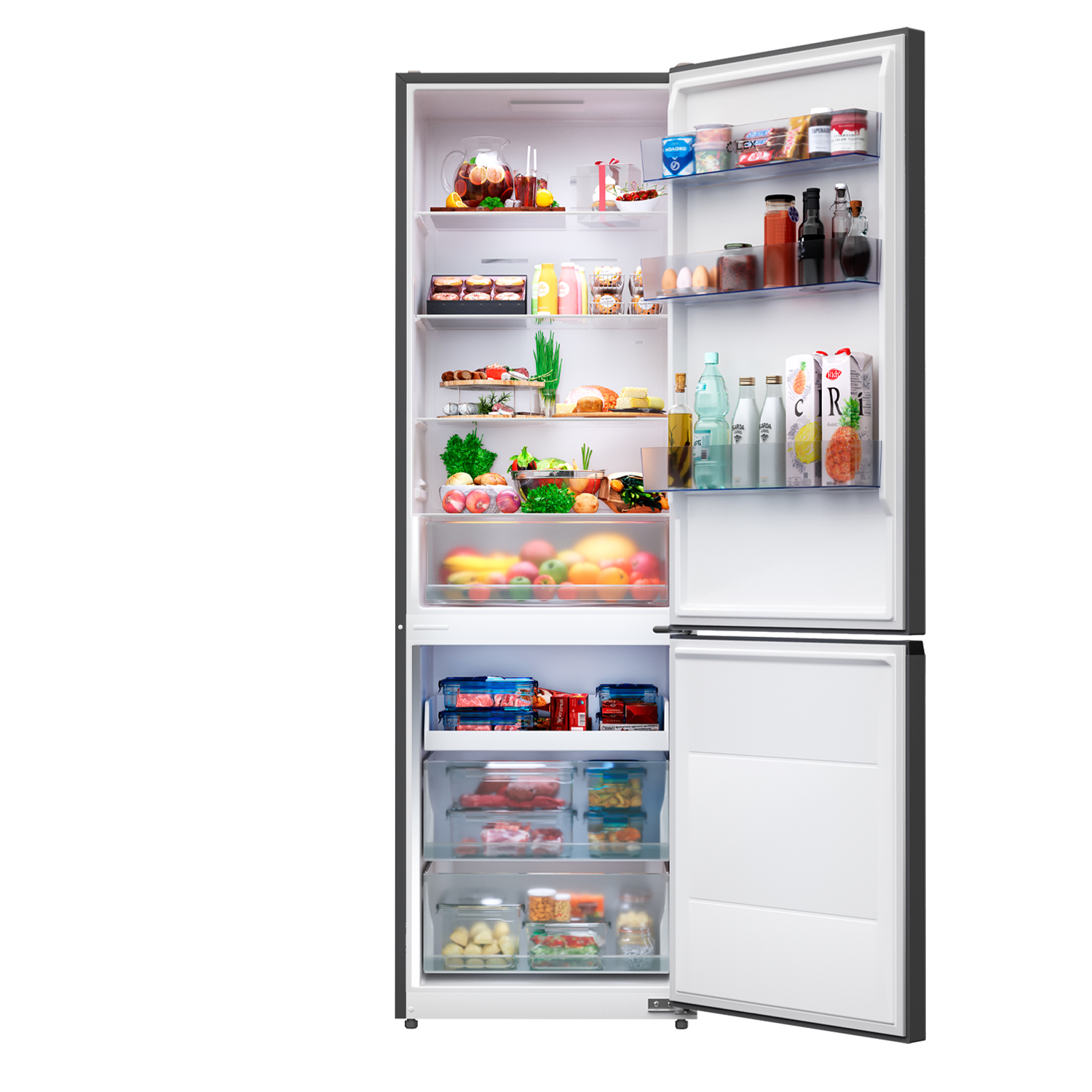 Два отделения с полезным объемом 409 литров дают возможность хранить все блюда и напитки на удобном уровне. Внутреннее пространство холодильника организовано максимально эффективно благодаря регулируемым полкам.