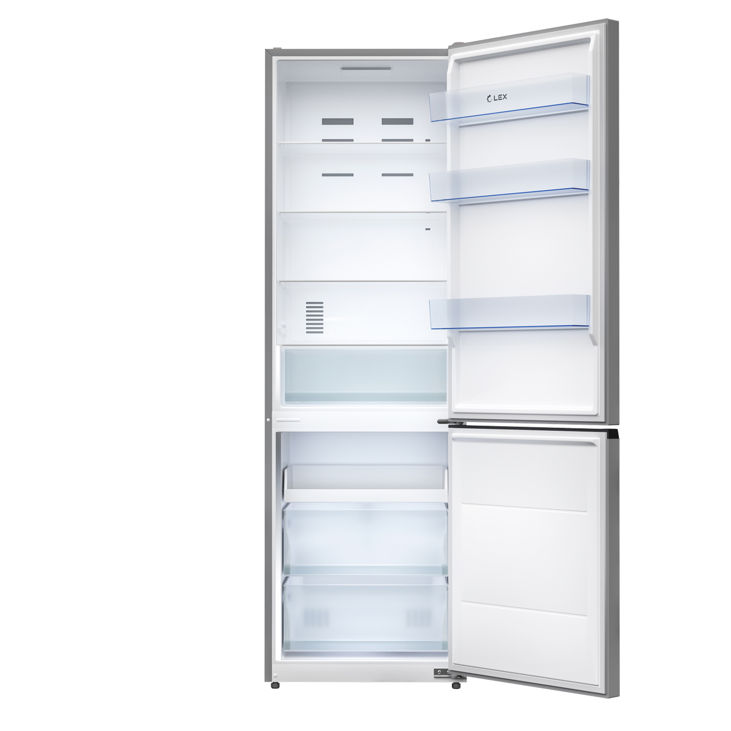 LED-лампы обеспечивают яркий свет, помогая вам быстро найти все, что нужно. Электронная панель управления делает настройку параметров интуитивно понятной. А перенавешиваемые двери делают холодильник LEX LKB185 универсальным для любой кухни.