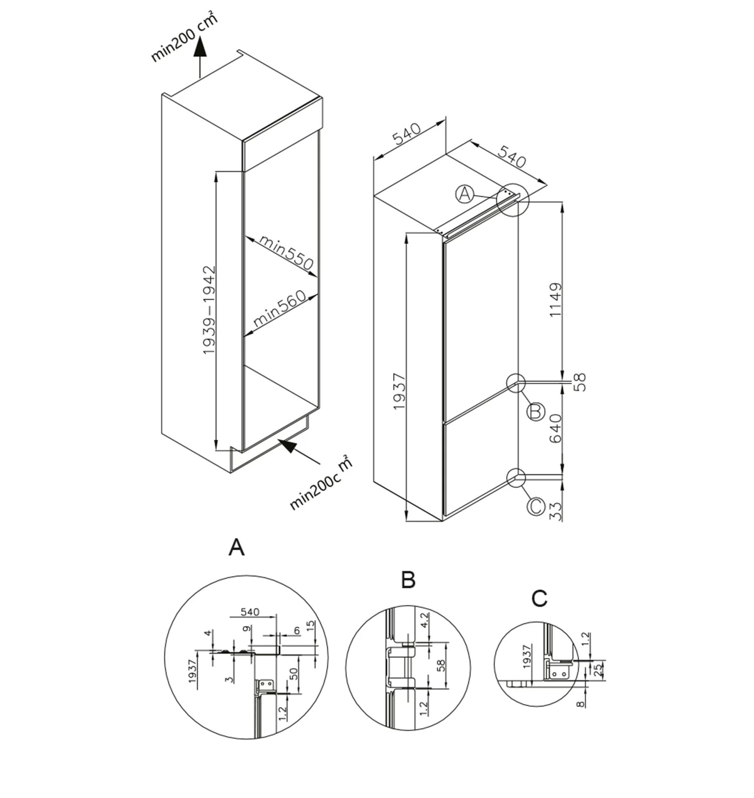 Габариты, мм. (ВхШхГ): 1937х540х550 мм.