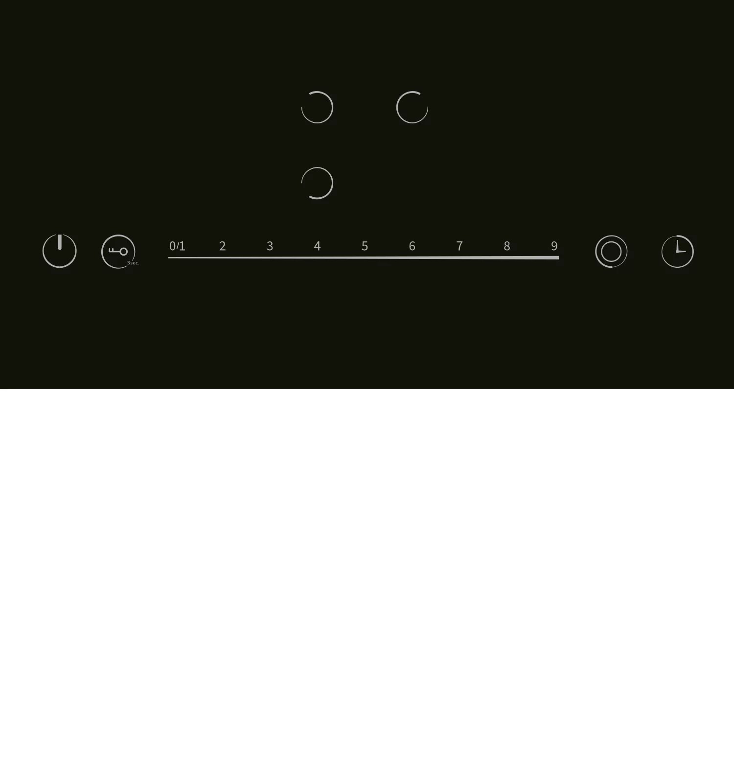 Двухконтурная конфорка: 1 х 1000/2000 Вт (Ø 120/ Ø 200 мм)