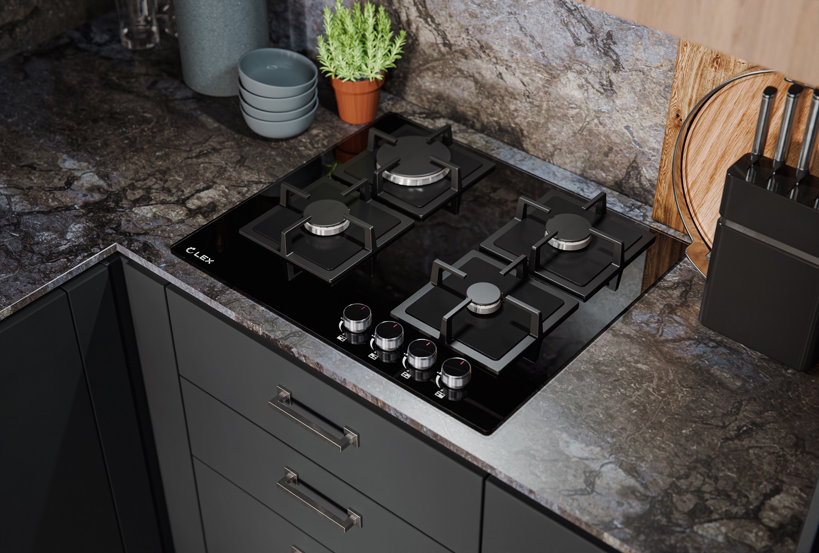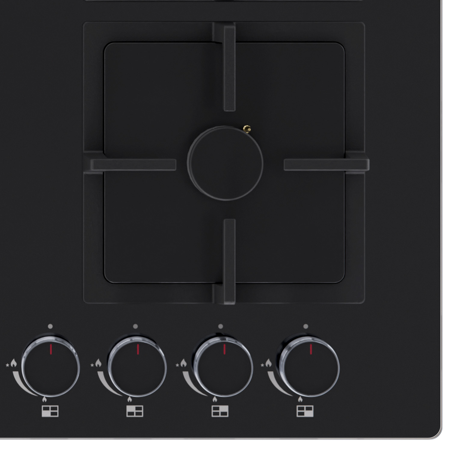 Варочная поверхность GVG 644A BBL на 4 конфорки прекрасно встроится в современную кухню. У модели стильная черная основа из стекла и оригинальная форма решеток. Механические переключатели и система автоматического поджига конфорок позволяют удобно регулировать уровень нагрева. С конфорками мощностью от 1000 до 3000 Вт любые блюда приготовятся быстро и получат идеальную консистенцию благодаря равномерному прогреву.