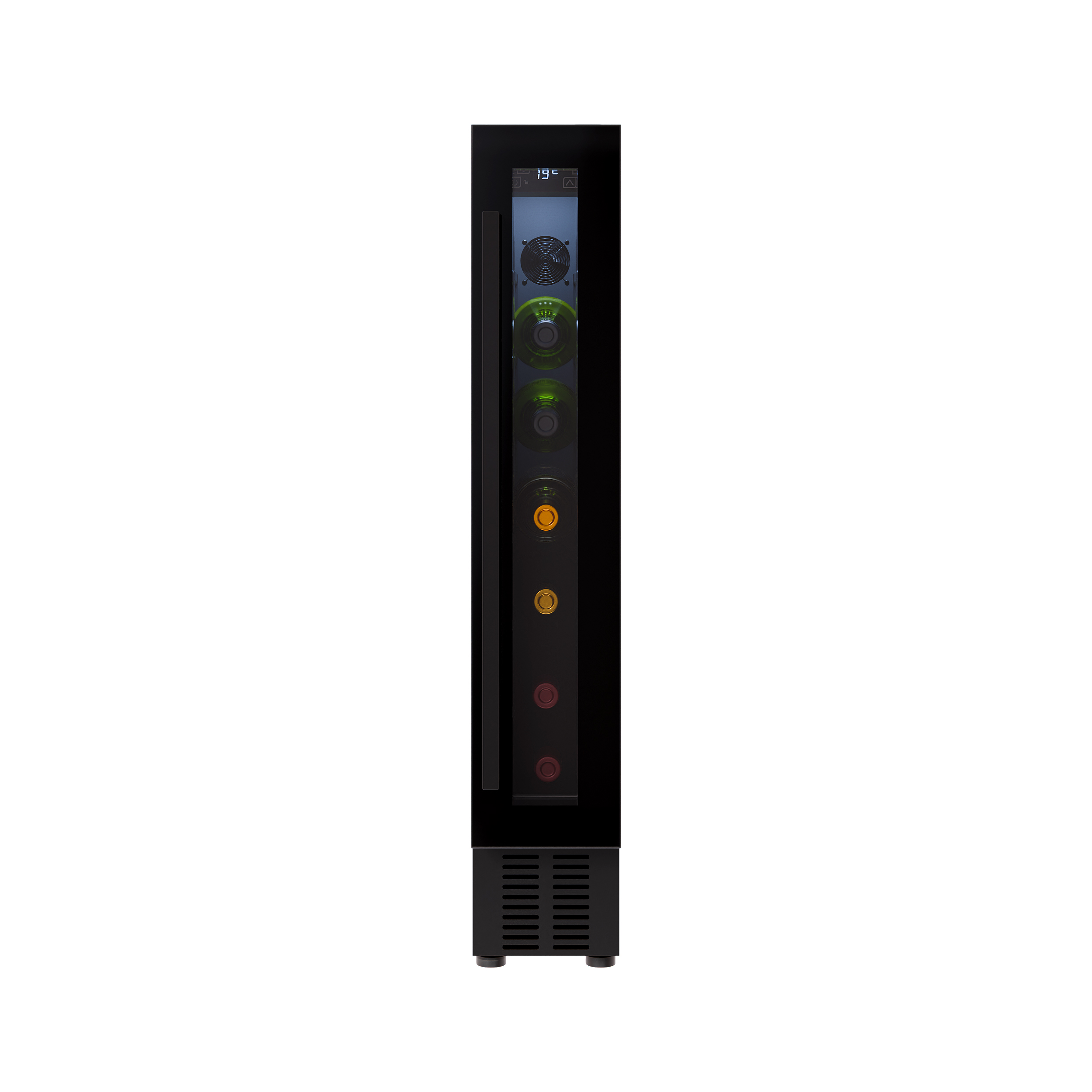 Сенсорная панель управления позволяет легко настраивать температуру, а дисплей отображает текущие параметры. Встроенная LED-подсветка помогает легко найти нужную бутылку даже при слабом освещении.