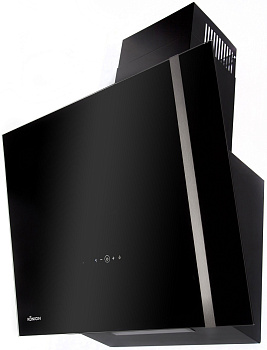 Пристенная вытяжка с плоским углом наклона. Стекло имеет внушительные габариты (высота 475 мм). Стильное сочетание полоски из нержавеющей стали обработки «сатин» и закаленного стекла.