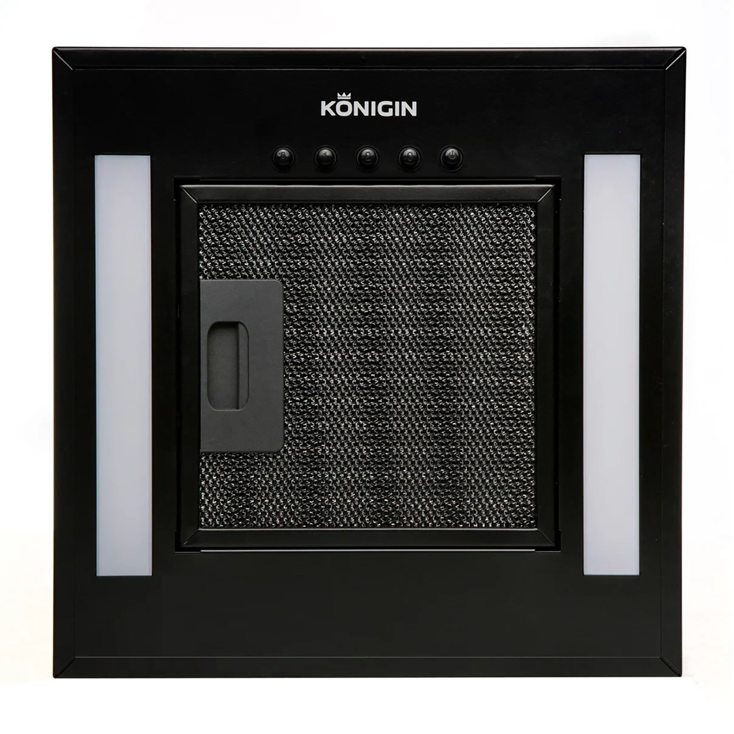 Корпус вытяжки выполнен из высококачественной нержавеющей стали окрашенной в черный матовый цвет и обработан абсорбирующим слоем, поэтому его легко содержать в чистоте