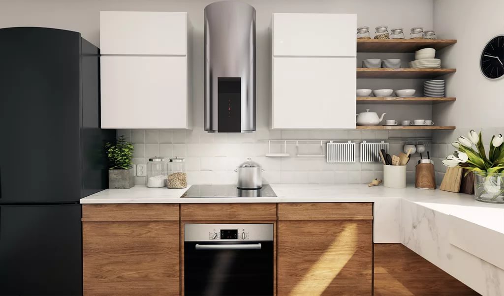 Сочетание цилиндрического корпуса с прямоугольной панелью управления и круглой декоративной панелью освещения создают стильную геометрию, привлекают лаконичностью и правильностью форм: