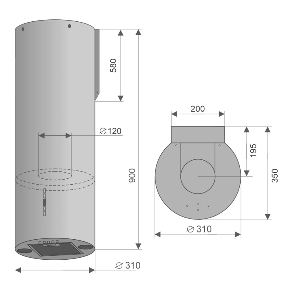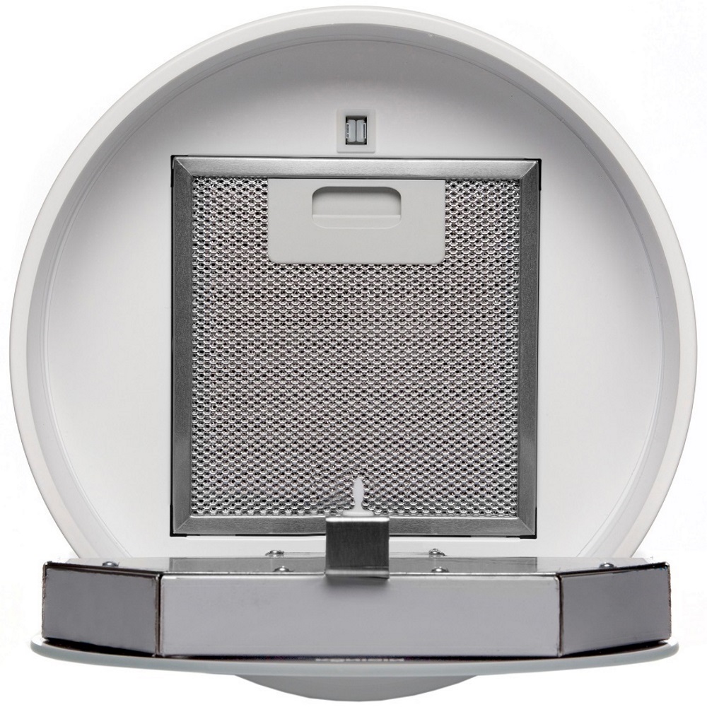 - Вытяжка выполнена в форме цилиндра. Геометрические формы повсеместно используется в современных дизайнерских проектах, они ассоциируются с простотой и лаконичностью, привносят в помещение гармонию и стиль. Стильное сочетание стали и блеска закаленного стекла создают ощущение легкости прочной конструкции. Декоративный стеклянный люк скрывает алюминиевый, жироулавливающий фильтр, придавая завершенность композиции