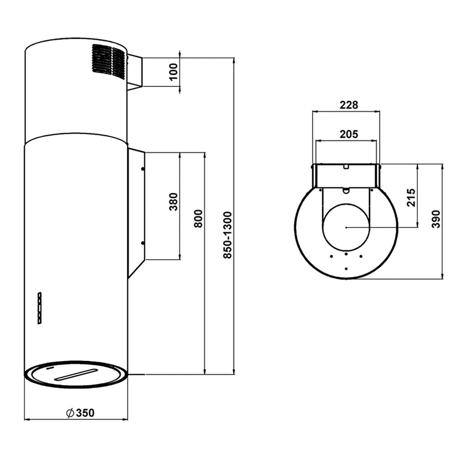 - Длина корпуса вытяжки с возможностью регулировки по высоте - от 850 мм до 1300 мм
