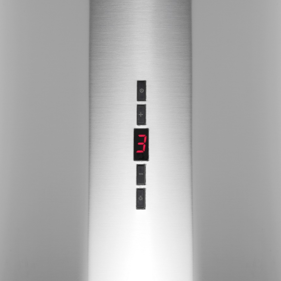 - Вытяжка выполнена в форме цилиндра. Геометрические формы повсеместно используется в современных дизайнерских проектах, они ассоциируются с простотой и лаконичностью, привносят в помещение гармонию и стиль.