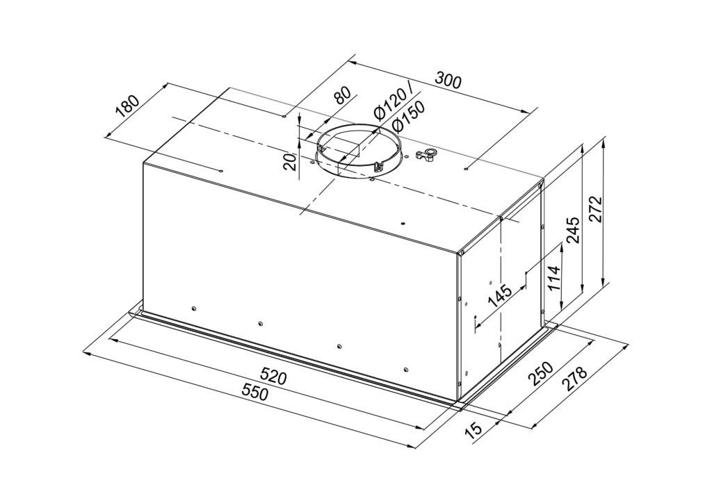 Компактная, полностью встраиваемая вытяжка. Ее можно успешно разместить практически в каждом шкафу, благодаря чему она занимает очень мало места. Стильное сочетание закаленного стекла и окрашенной стали. Декоративный люк из закаленного стекла скрывает пятислойный алюминиевый, жироулавливающий фильтр. Стальной корпус окрашен матовой краской и покрыт защитным лаком изнутри и снаружи. Один из самых тихих и производительных моторов – мотор GPE (Производство Италия). Класс энергоэффективности A+. Современное светодиодное освещение значительно снижает потребление энергии, 2 диодных светильника по 3 Вт превосходно освещают рабочую зону ярким и теплым светом. Кнопочное управление простое и удобное в использовании (мягкое нажатие).