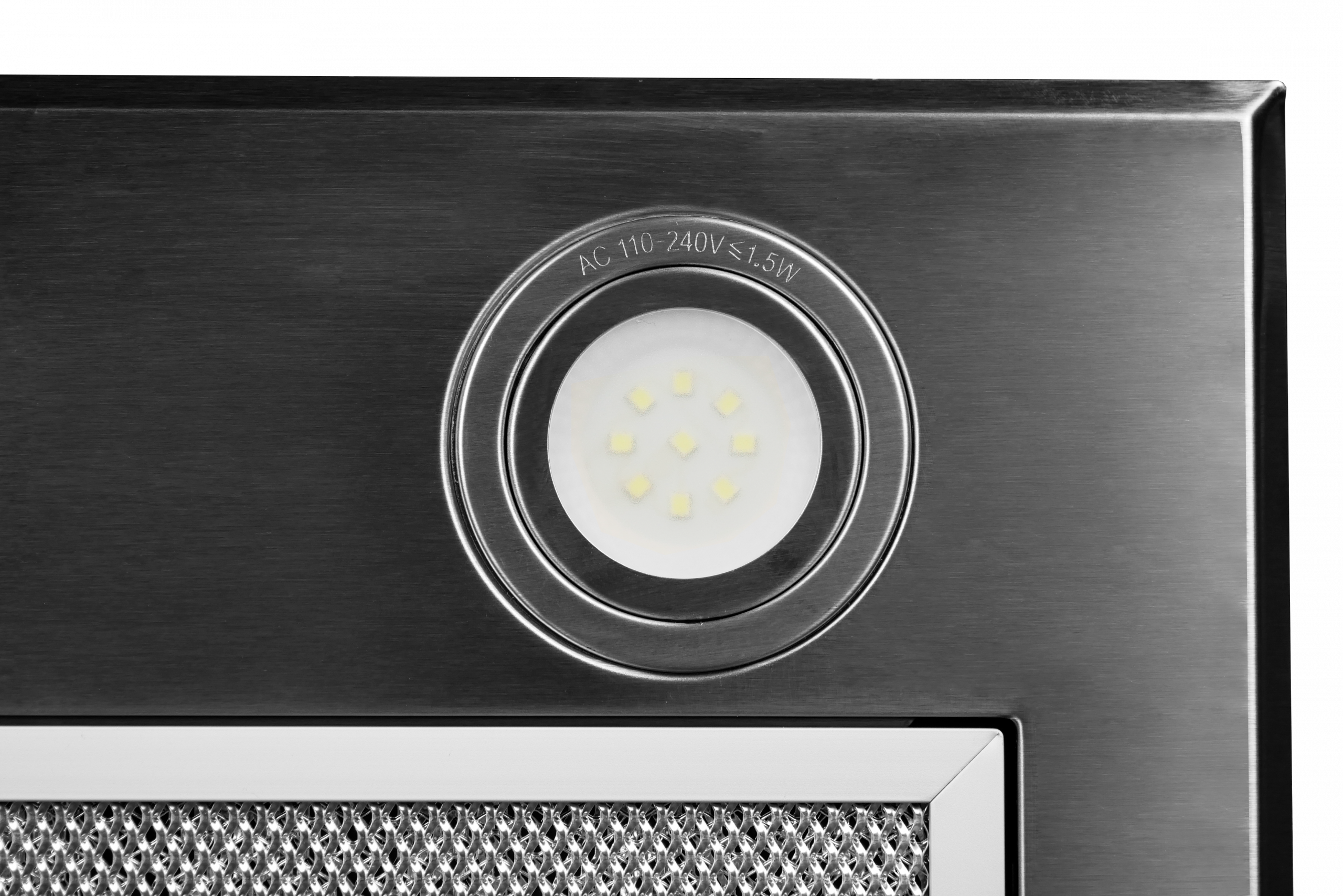 LEX GS BLOC P 600 INOX — полновстраиваемая вытяжка практически незаметна в интерьере, благодаря чему отлично подходит как для интерьера в классическом стиле, так и для современного минималистичного пространства. Устройство цвета нержавеющей стали имеет интуитивно понятное кнопочное управление. В передней части вытяжки расположена экономичная LED подсветка. Подключение LEX GS BLOC P 600 INOX возможно, как на отвод воздуха в вентиляцию, так и на режим рециркуляции воздуха. Мотор повышенной мощности обеспечивает уникальные для своего класса показатели производительности.