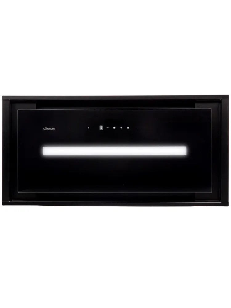 Полностью встраиваемая вытяжка с т-образным корпусом. Стильное сочетание закаленного стекла и окрашенной стали. Декоративный люк из закаленного стекла скрывает пятислойный алюминиевый, жироулавливающий фильтр с усиленной конструкцией