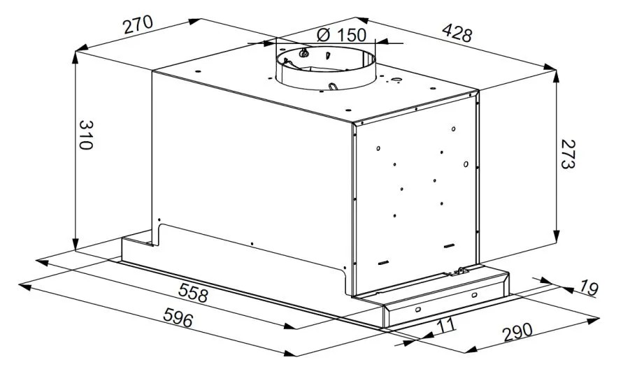 Корпус вытяжки изготовлен из высокопрочной итальянской стали