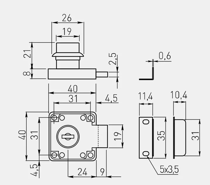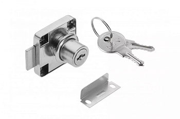 Замок мебельный №138 с планкой, простой (металлический) ключ - устройство, служащее для запирания дверей и ящиков мебельных изделий. Фиксация в закрытом состоянии осуществляется посредством поворота ключа.