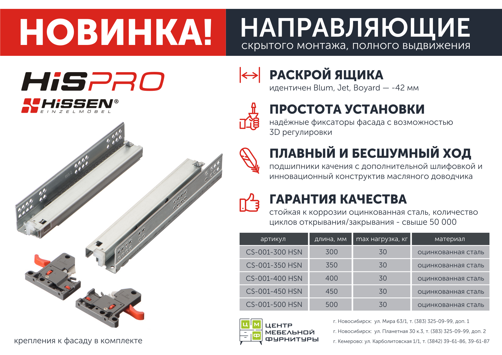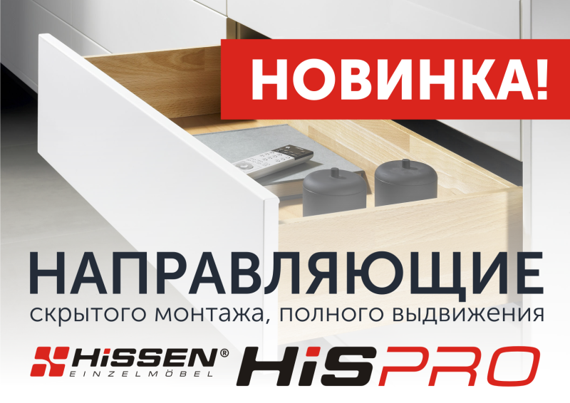 Новинка! Направляющие скрытого монтажа, полного выдвижения HISPRO от HISSEN!