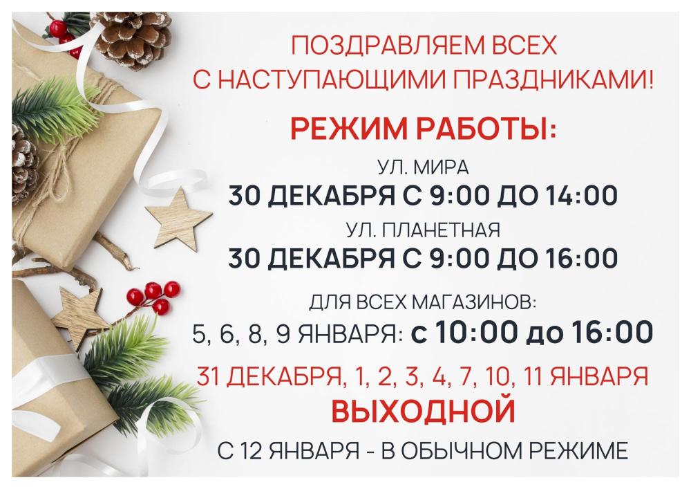—Режим работы наших магазинов в новогодние праздники 2025-2026гг