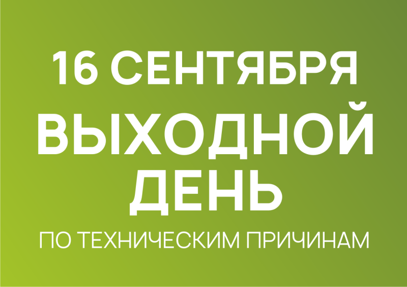 По техническим причинам, в субботу, 16 сентября 2023г., в наших магазинах выходной день.